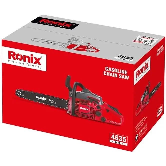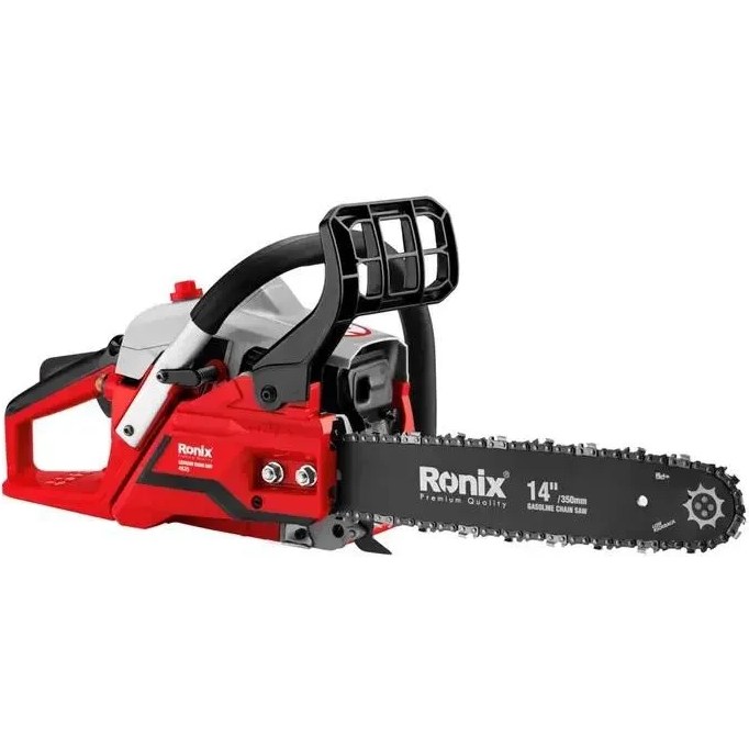 اره زنجیری بنزینی رونیکس مدل 4635 با موتور دوزمانه 38.2 سیسی و توان خروجی 1300 وات، ابزاری قدرتمند برای برش درختان و الوارهای ضخیم است. این مدل دارای ساطور 35 سانتیمتری (14 اینچ) بوده و برای کاربردهای خانگی، باغبانی و صنعتی مناسب میباشد. سیستم روغنکاری خودکار، اصطکاک بین زنجیر و ساطور را کاهش داده و عمر مفید دستگاه را افزایش میدهد. طراحی ارگونومیک همراه با سیستم ضد لرزش دوبل، کنترل دقیقتر و استفاده راحتتری را فراهم میکند. این اره زنجیری مجهز به سیستم استارت سریع است که روشنکردن آن را بسیار آسان میسازد. وزن مناسب و ساخت باکیفیت، آن را به انتخابی ایدهآل برای حرفهایها و کاربران خانگی تبدیل کرده است
