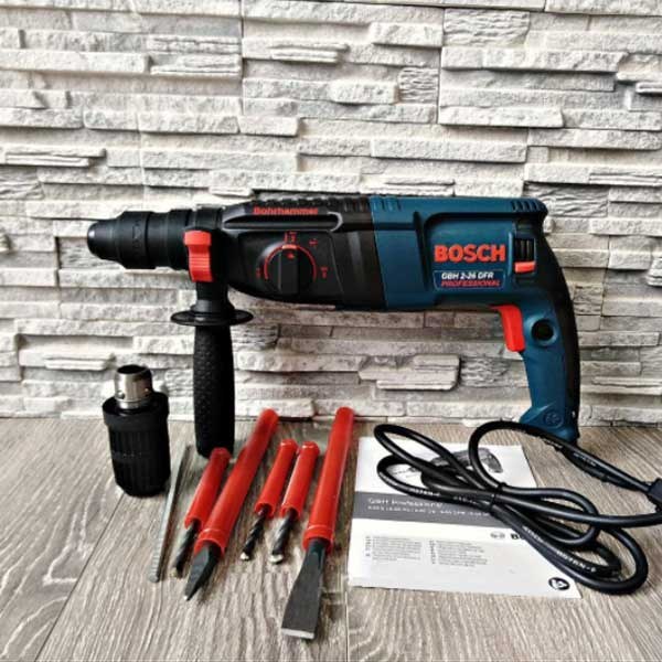 دریل چکشی بوش مدل GBH 2-26 DFR یک ابزار حرفهای آلمانی با وزن ۲ کیلوگرم و سه نظام کاری چکشزنی، چکشزنی + چرخش و فقط چرخش است که برای حفر در بتن، سنگ و مصالح سخت طراحی شده است. این مدل مجهز به سیستم چکش قوی با نیروی ضربه بالا و گیره SDS-plus برای تعویض سریع و ایمن مته است. از ویژگیهای برجسته آن میتوان به دسته جانبی قابل تنظیل، سیستم ضد لرزش Vibration Control، سوئیچ ایمنی دوگانه و بدنه مستحکم با محافظ موتور اشاره کرد. دریل بوش GBH 2-26 DFR با کیفیت ساخت عالی، انعطافپذیری بالا در انواع کاربردها و استانداردهای ایمنی جهانی، گزینهای ایدهآل برای کاربران حرفهای در پروژههای صنعتی و ساختمانی است.