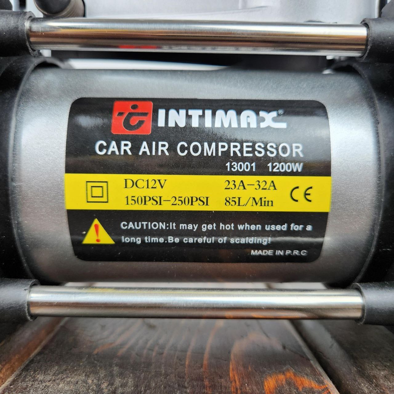 کمپرسور فندکی دو سیلندر اینتیمکس مدل 13001 یک پمپ باد خودرویی با قابلیت تغذیه از فندک 12 ولت است که برای باد کردن لاستیک خودرو، موتورسیکلت، دوچرخه و توپهای ورزشی طراحی شده است.این دستگاه مجهز به دو سیلندر قدرتمند، گیج فشار دقیق، چراغ قوه LED و شلنگ فنری 2 متری است و حداکثر فشار خروجی آن تا 150 PSI (معادل 10 بار) میرسد .دبی هوای خروجی آن 85 لیتر بر دقیقه است که باد کردن سریع لاستیکها را ممکن میسازد و با بدنه تمامفلزی و پایههای پهن، پایداری و دوام بالایی در هنگام کار دارد.با وجود اینکه عنوان «با باتری» در برخی منابع ذکر شده، این مدل عموماً مستقیماً از فندک خودرو تغذیه میشود و باتری داخلی ندارد؛ اما به دلیل مصرف جریان 23 آمپری، برای استفاده باید موتور خودرو روشن باشد