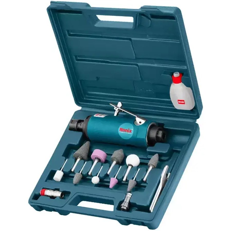 کیت فرز انگشتی بادی رونیکس مدل RA-1802 شامل یک دستگاه فرز بادی حرفهای و 16 عدد لوازم جانبی متنوع است که برای کارهای ظریف هنری، حکاکی، برش و پرداخت روی چوب، فلز، پلاستیک و سرامیک مناسب است. این دستگاه با نیروی هوای فشرده کار میکند و بهدلیل عدم وجود موتور الکتریکی، سبکوزن، بدون جرقه و مناسب محیطهای خطرناک محسوب میشود. طراحی جمعوجور و کنترل دقیق سرعت با شیر گاز، دقت بالایی در انجام کارهای تخصصی فراهم میکند. کیت RA-1802 رونیکس با کیف منظم و تنوع مناسب ابزار، گزینهای عالی برای صنایع فلزکاری، قالبسازی و کارهای تعمیراتی دقیق است.